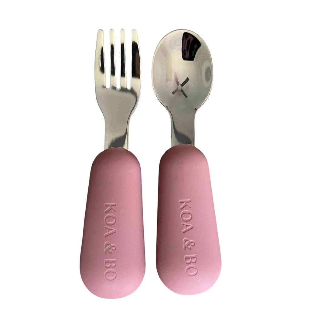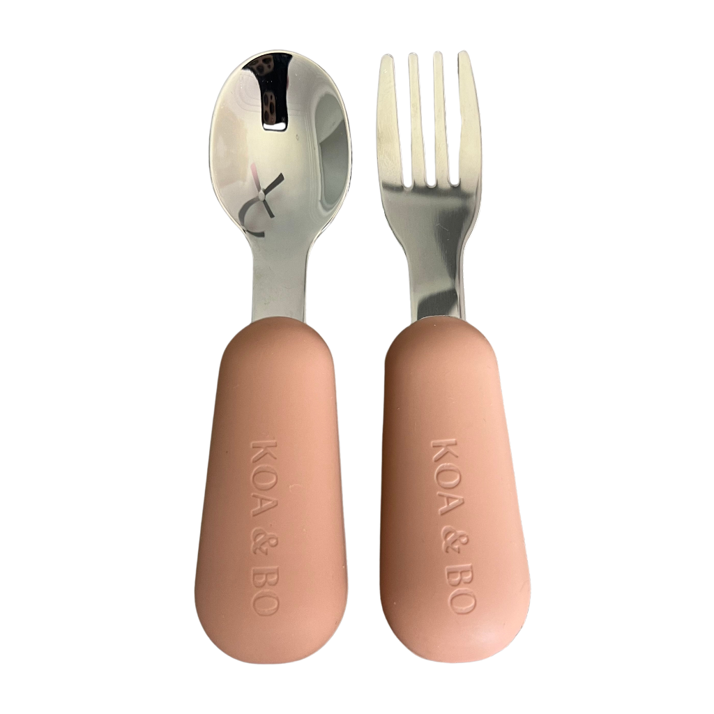 Silicone handled stainless steel fork & spoon with hard case - great for on the go or keeping sets together at home