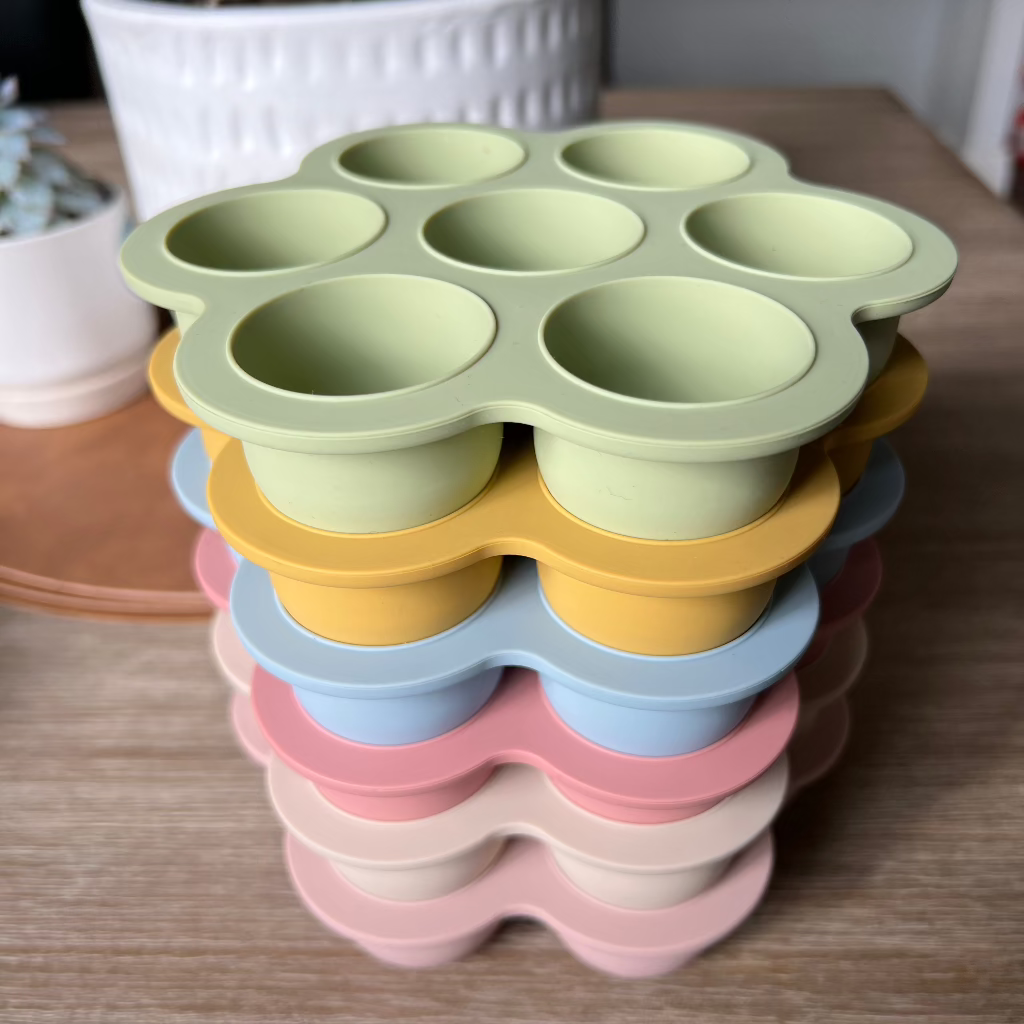 Baking, freezing, purée - think mini muffins, quiches, fruit ice cubes, smoothies pods, breast milk, frozen yogurt & even sensory play! Easy pop out silicone pods with a clear snap lock lid that you can write dates and flavours on
